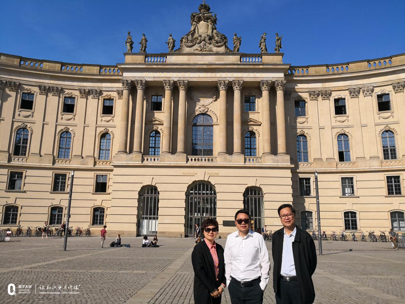 量子教育考察团接着来到了洪堡大学,洪堡大学是世界上第一所将科学研究和教学相融合的新式大学,拥有十分辉煌的历史,被誉为“现代大学之母”,其”教研合一”、“学术自由、教学自由、学习自由”的洪堡精神也影响到了几乎所有的现代大学。