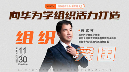 「冲刺吧Q4」-激发组织活力 第五期直播时间:11月30日(周三) 20:00-21:00分享主题:《组织突围:向华为学...