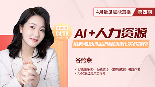 ⏰直播时间:4月30日20:00💎直播主题:《AI+人力资源—招聘与培训全流程智能化实战指南》👩🏫直播嘉宾:谷燕燕·...