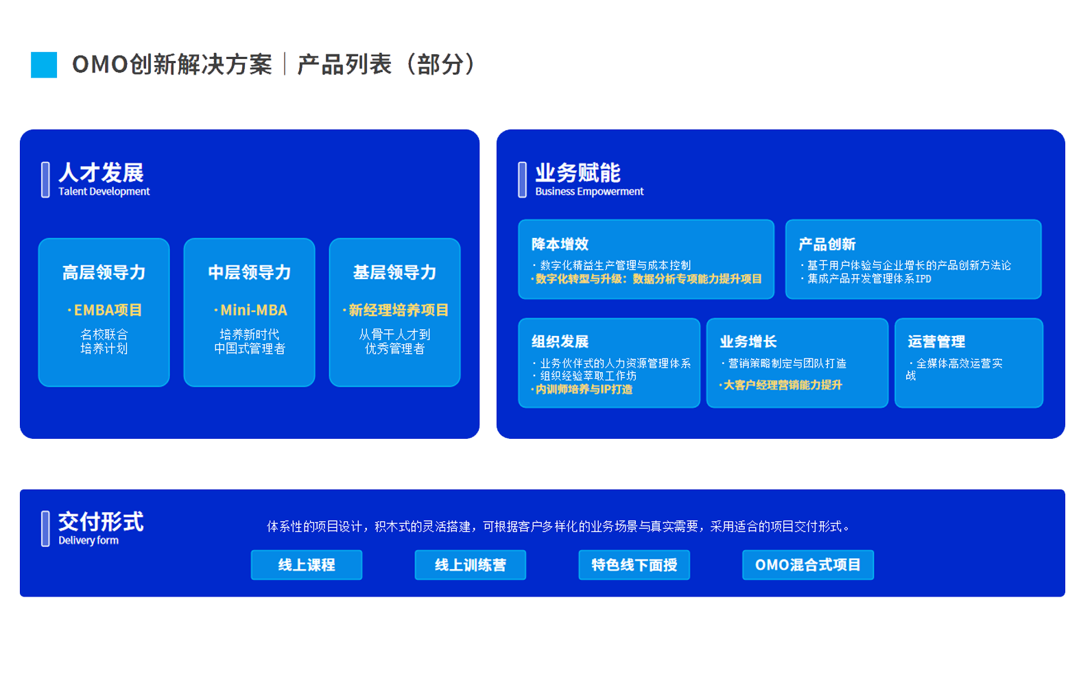 培训需求相对较复杂、涵盖内容较多/以线下为主,需要体系化的设计方案